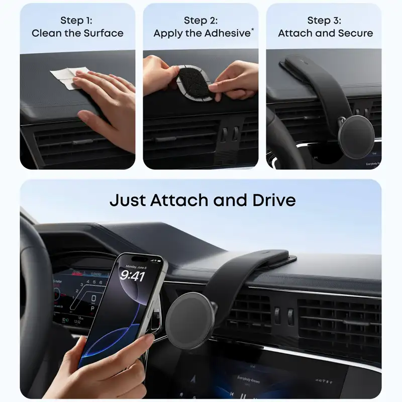 | سایر توضیحات | ابعاد کوچک و طراحی مینیمالیستی که با بیشتر داشبوردها سازگار است. , این پایه نگهدارنده صرفاً برای نگهداری گوشی طراحی شده و از قابلیت شارژ بیسیم پشتیبانی نمیکند. , با استفاده از آهنربای نئودیمیومی، اتصال محکم و بدون لغزش را فراهم میکند. , برای استفاده بهینه، گوشی شما باید دارای قابلیت MagSafe باشد. , برخی از قابهای ضخیم یا دارای لایههای فلزی ممکن است باعث کاهش قدرت مغناطیسی شوند. , نصب آسان با استفاده از چسب ۳M VHB، نصب سریع و بدون آسیب به داشبورد خودرو. , نوع نصب: چسبی با استفاده از چسب ۳M VHB |