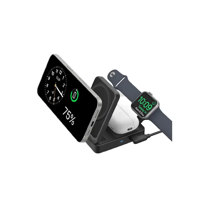 | سایر توضیحات | آسان تاشو و سبک وزن جهت حمل آسان , دارای گواهی QI2 , شارژ سه دستگاه به صورت همزمان: ساعت هوشمند،ایرپادز و گوشی هوشمند |