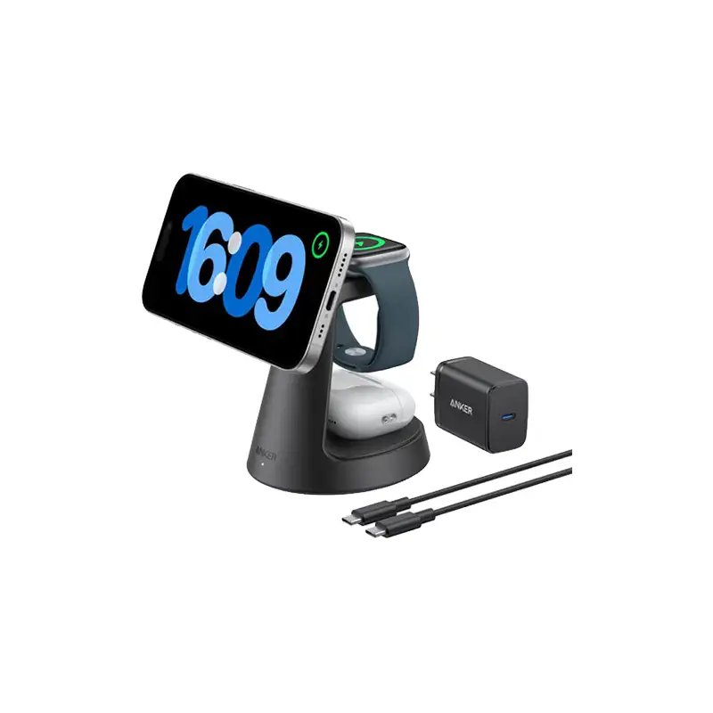 | سایر توضیحات | آداپتور USB‑C / با توان ۴۰ وات، کابل USB‑C به USB‑C , تاب دادن عمودی تا ۴۵ درجه؛ امکان استفاده در وضعیت افقی بهخصوص در حالت StandBy , توان خروجی برای اپل واچ حدود ۵ وات , توان خروجی برای ایرباد / کیس بیسیم حدود ۵ وات , شارژ همزمان گوشی هوشمند، ساعت هوشمند و ایرباد یا لوازم مشابه |